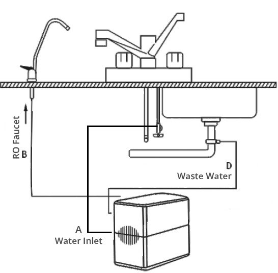 - C: Hose should be connected from device post carbon outlet to clean water line