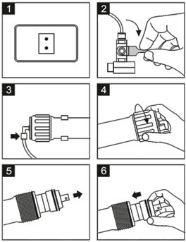 - ¼ Attach the 6mm water inlet hose to the metal ball valve. Make sure the ball valve is closed.